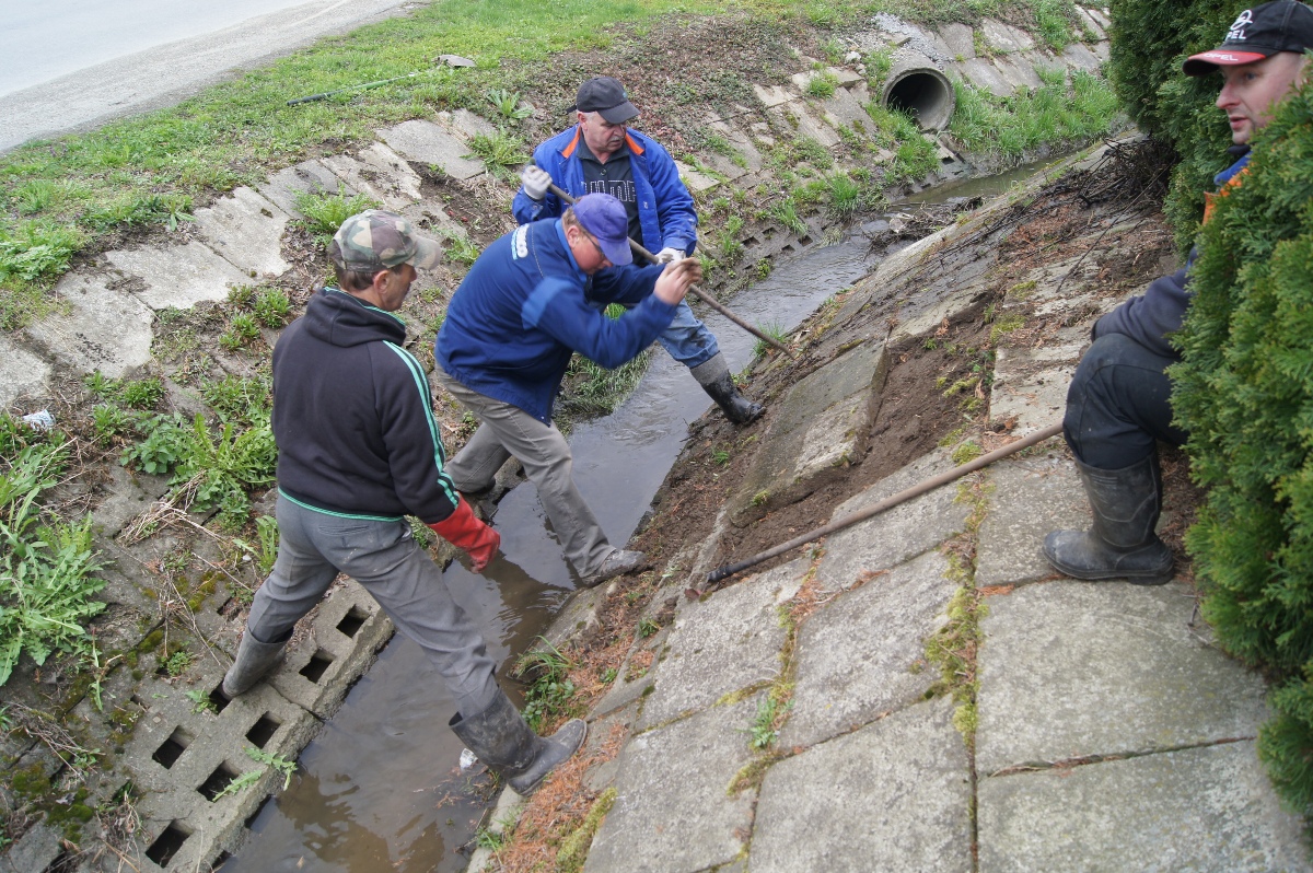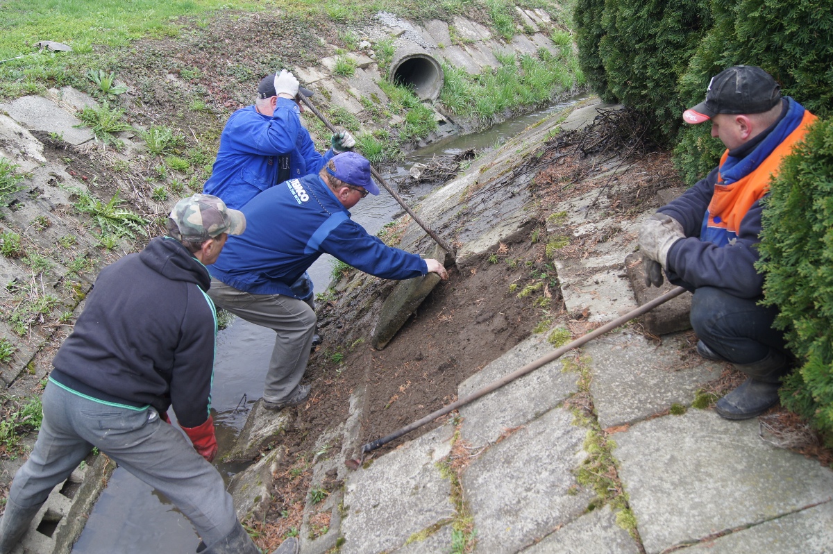- czyszczenie i ułożenie płyt betonowych obrzeża rowu przed Domem Ludowym,