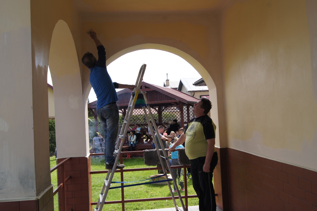 - czyszczenie i malowanie lamperii zewnętrznych Domu Ludowego,
