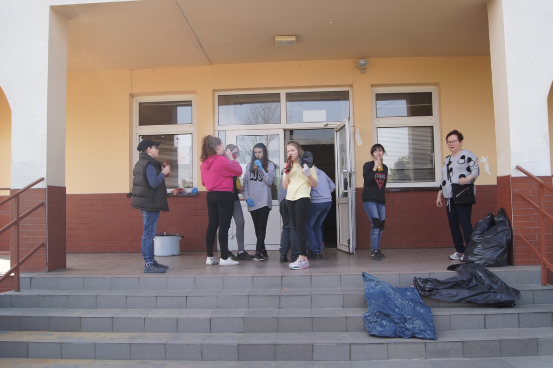 Martą Wodzińską- Rostek i Bernardą Furmańską. Zebranych przywitała Sołtys Długiego Ewa Michniewska i po dokonaniu podziału zebranych na 6 grup sprzątających oraz zaopatrzeniu ich w rękawice ochronne i worki na śmieci, przystąpiono do sprzątania naszej miejscowości. Przedstawiciele Rady Sołeckiej i Koła Gospodyń Wiejskich sprzątali otoczenie Domu Ludowego, Ochotnicza Straż Pożarna drogę w kierunku Poręb, a cztery grupy uczniów wraz z opiekującymi się nimi nauczycielami i mieszkańcami Długiego sprzątali drogi w kierunku Jedlicza, Żarnowca i lasu. Finałem wiosennych porządków było przygotowane przez Radę Sołecką