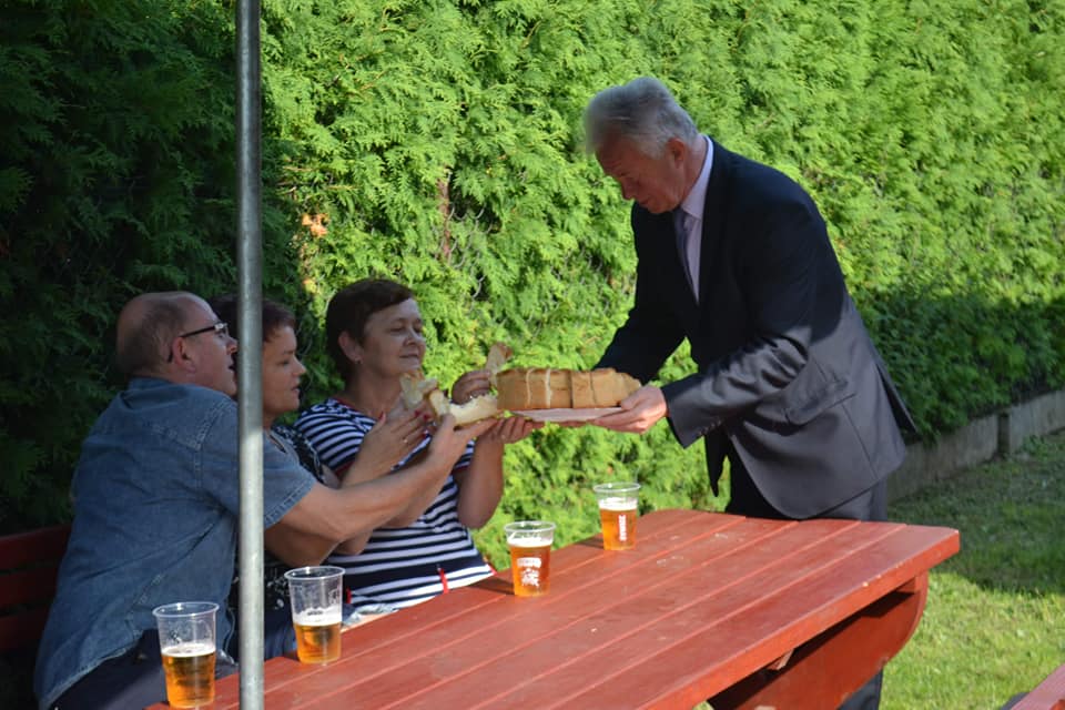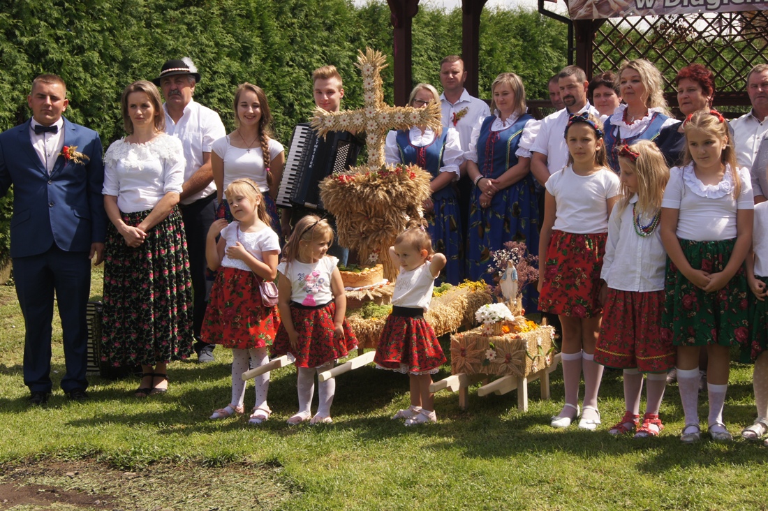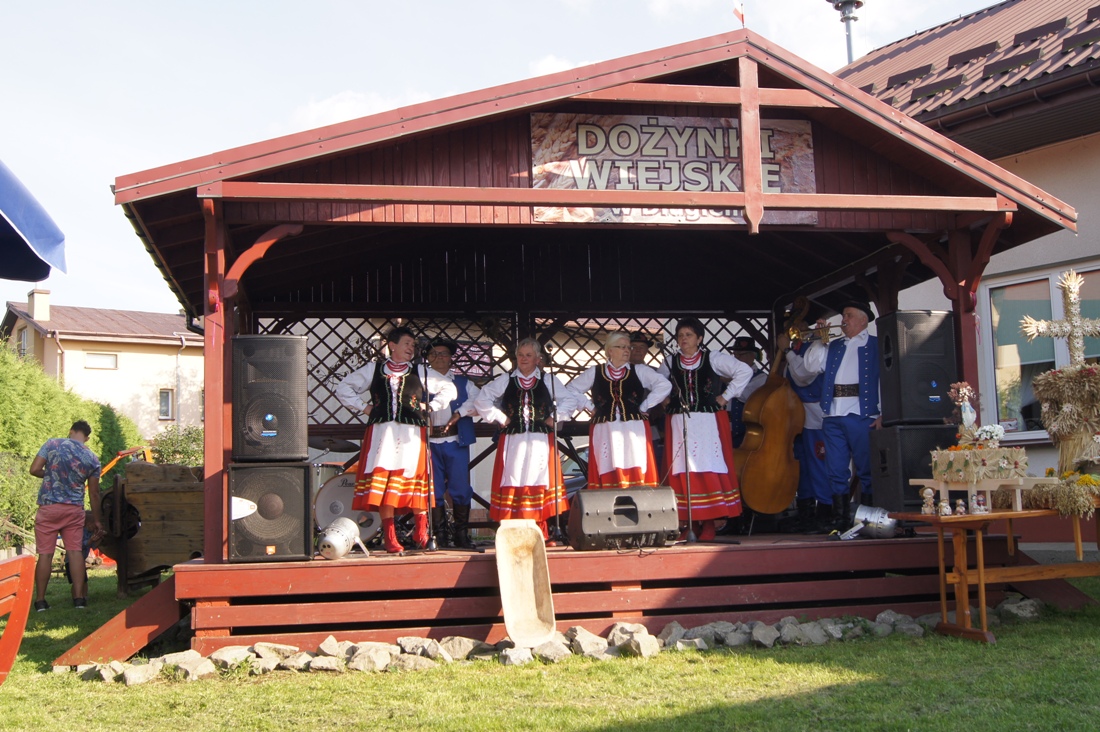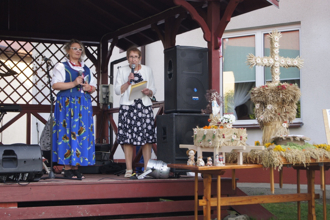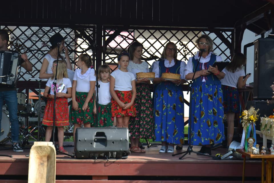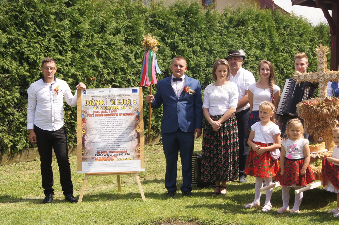„Z ekonomią społeczną”. To z tego projektu pozyskaliśmy środki dla Koła Gospodyń Wiejskich i zakupiliśmy duży namiot imprezowy, który był już ustawiony podczas naszych Dożynek oraz grill, z którego jedliśmy pyszne kiełbaski. Z tego projektu mieliśmy również środki na zakup materiałów niezbędnych do wykonania Wieńców Dożynkowych. W świętowaniu uczestniczyli szacowni goście, którzy przyjęli nasze zaproszenie i zaszczycili nas swoją obecnością: Poseł na Sejm RP Piotr Babinetz, Radna Sejmiku Podkarpackiego Joanna Bril, zastępca dyrektora Gminnego Ośrodka Kultury w Jedliczu Zygmunt Jeżyk i Pani Maria Stefanik, poetka z Żarnowca. Dziękuję naszym wspaniałym mieszkańcom za to że byli z nami, cieszyli się i dziękowali Bogu i Maryi