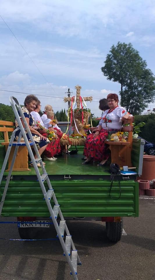z plonem jeżdziliśmy po MIEJSCOWOŚCI DŁUGIE pozdrawiając MIESZKAŃCÓW zgromadzonych pod domostwami, pokazując NASZ WIENIEC, który został uwity przez Panie: Kazimiera Kubacka, Alina Peszko, Halina Kozieł, Helena Mróz, Regina Bugiel, Aneta Osek, Monika Jurusik, Zofia Bugiel, Maria Peszko, Anna Warchoł, Bernadetta Faliszek, Ewa Michniewska.