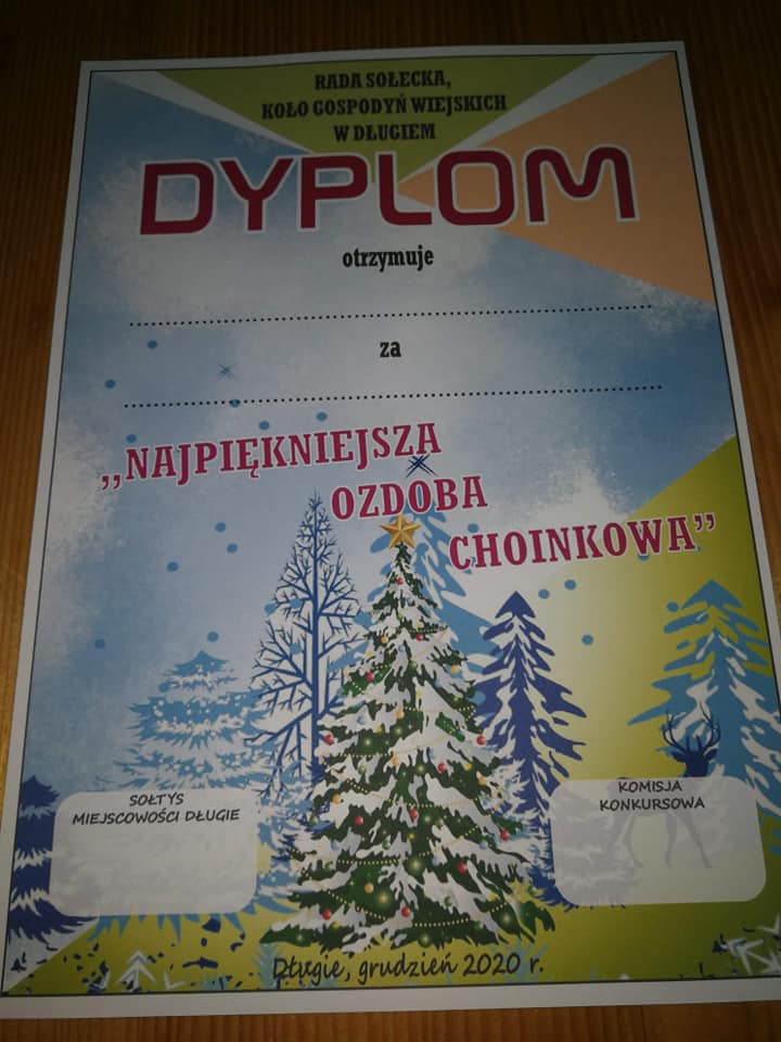 i miejscowej Ochotniczej Straży Pożarnej w grudniu br. zorganizowali dla dzieci i młodzieży z naszej miejscowości konkurs na najpiękniejszą ozdobę choinkową. W dniu 22.12.2020r Komisja konkursowa oceniła i zaprosiła wykonawców ozdób na spotkanie do Domu Ludowego, gdzie zapoznali się z wynikami konkursu i otrzymali okolicznościowe dyplomy