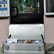 Skrzynia była w całości wykonana z metalu, zabezpieczona grubym łańcuchem i kłódką z szyfrem,