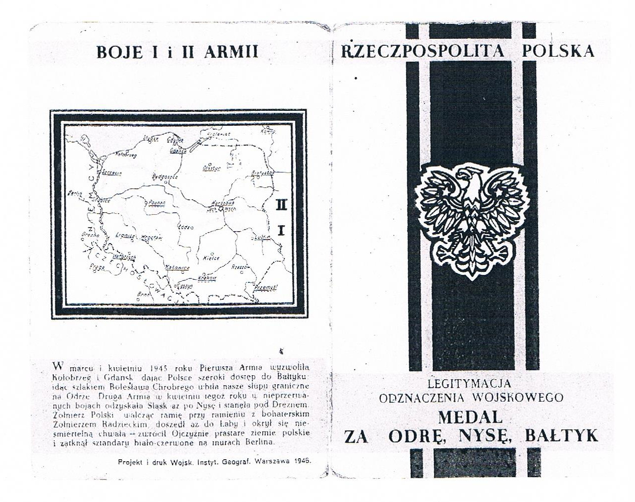 - MEDAL ZA ODRĘ NYSĘ I BAŁTYK (1946 R.),