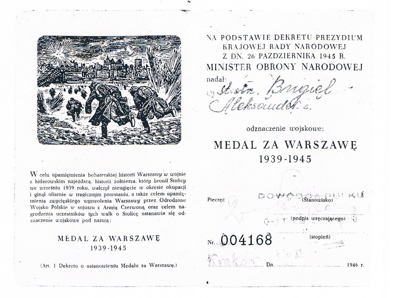 - MEDAL ZA WARSZAWĘ 1939-1945 (1946 R.),