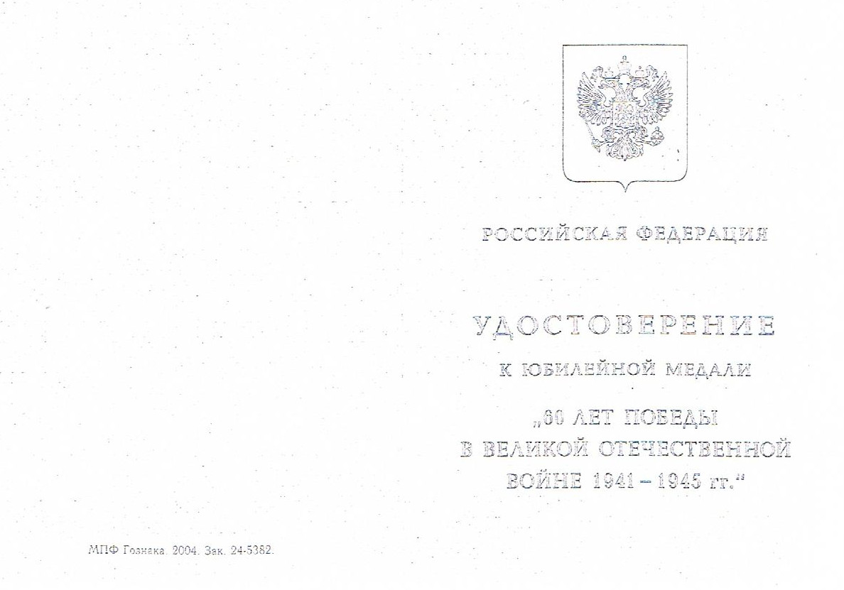 - MEDAL JUBILEUSZOWY „ 60 LAT OD ZWYCIĘSTWA W WIELKIEJ WOJNIE OJCZYŹNIANEJ 1941-1945 (FEDERACJA ROSYJSKA, 2005 R.),