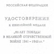 - MEDAL JUBILEUSZOWY „ 65 LAT OD ZWYCIĘSTWA W WIELKIEJ WOJNIE OJCZYŹNIANEJ 1941-1945 (FEDERACJA ROSYJSKA, 2011 R.).
