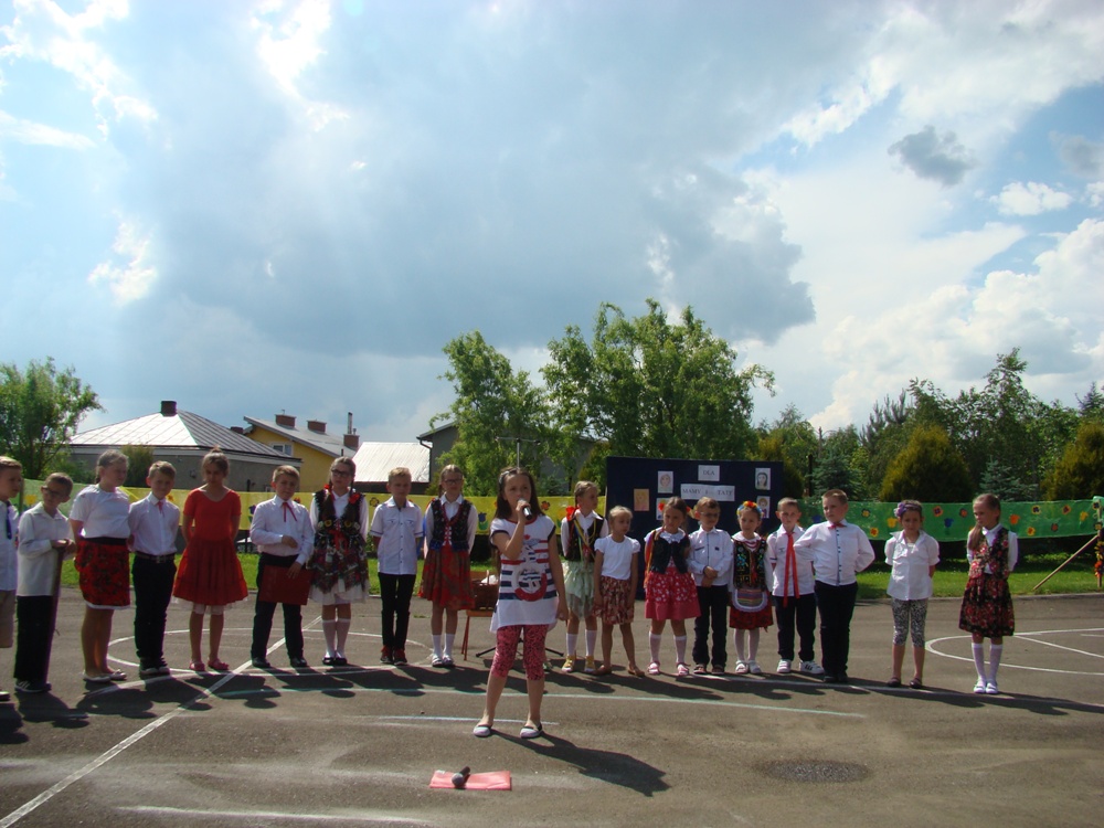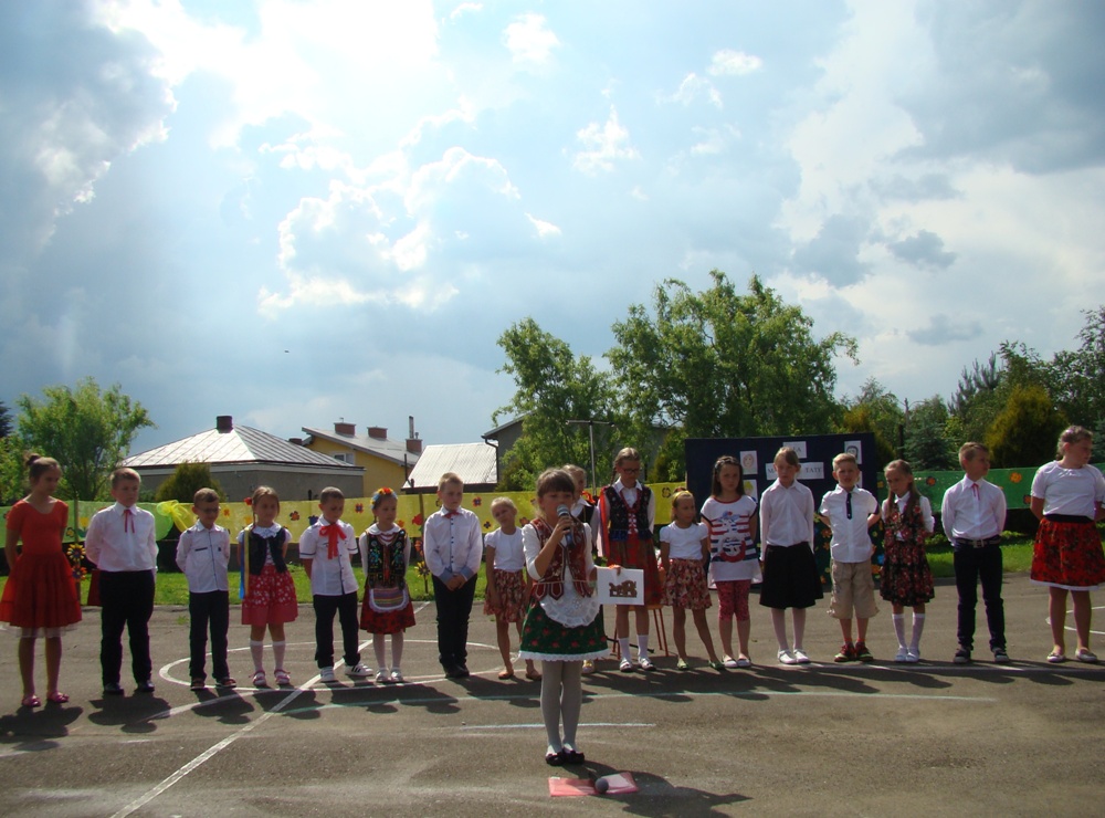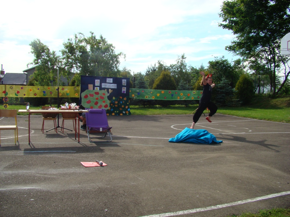 i różnorodny program artystyczny z okazji Dnia Mamy i Taty. Rozpoczęliśmy przedstawienie uczestnicząc w magicznej podróży po Polsce, poznając największe polskie miasta położone wzdłuż Wisły oraz legendy z nimi związane. Następnie wysłuchaliśmy pięknych wierszy i piosenek, których słowa kierowane były do Rodziców. Poznaliśmy też wspaniałe talenty aktorskie naszych uczniów. Młodzi aktorzy przygotowali skecz pt. „Adam i Ewa”, który był humorystyczną interpretacją znanego fragmentu „Biblii”. W programie nie obyło się również bez tańca – uczniowie zaprezentowali zarówno pokaz tańców narodowych jak i pokaz cheerleader’ek. Występ zakończył się zaśpiewaniem przez wszystkich uczniów piosenek dla Mamy i Taty w języku angielskim. Wzruszającą dla Rodziców chwilą było wręczenie przez dzieci własnoręcznie przygotowanych upominków. Po części artystycznej nadszedł czas na wspaniałą zabawę. Rodzice zadbali o pyszny poczęstunek, były grillowane kiełbaski, ciasto, lody i napoje. Wszyscy aktywnie uczestniczyli w zorganizowanych atrakcjach i konkursach: malowanie twarzy, konkurs rysowania kredą, konkurs piosenki oraz rodzinny konkurs wiedzy SKO,
